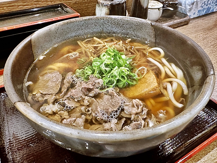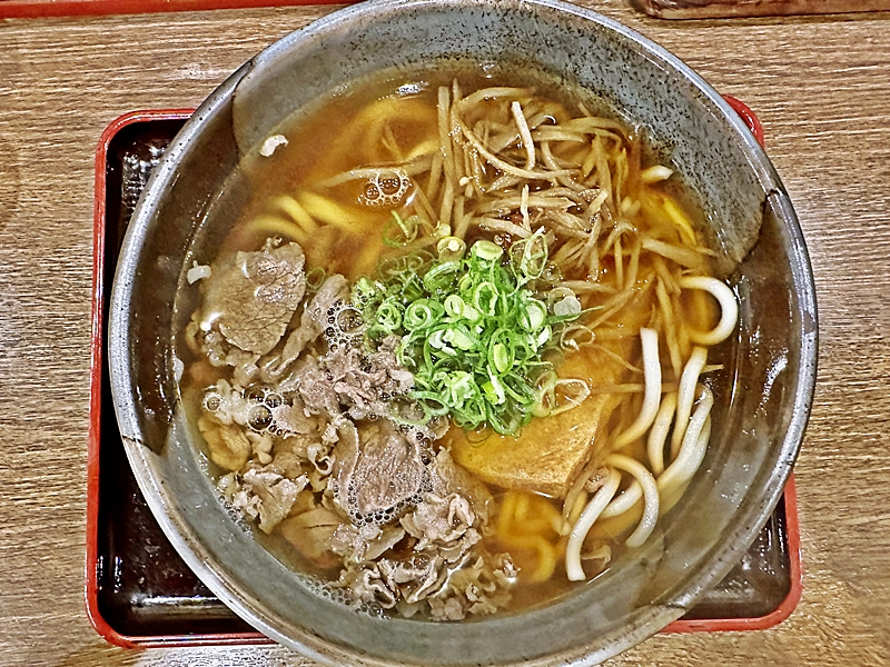 우동에 유부와 고기. 파를 듬뿍 넣었고 국물이 국물이 정말 끝내주는 맛이었습니다.